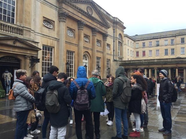 Escuchando las explicaciones de nuestro Guía en Bath