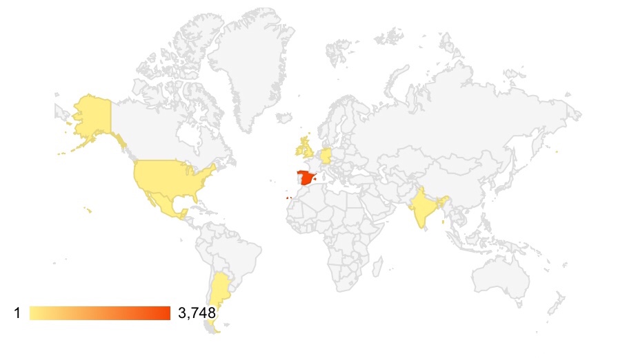 Este mapa representa el número de visitas a nuestra web por país.