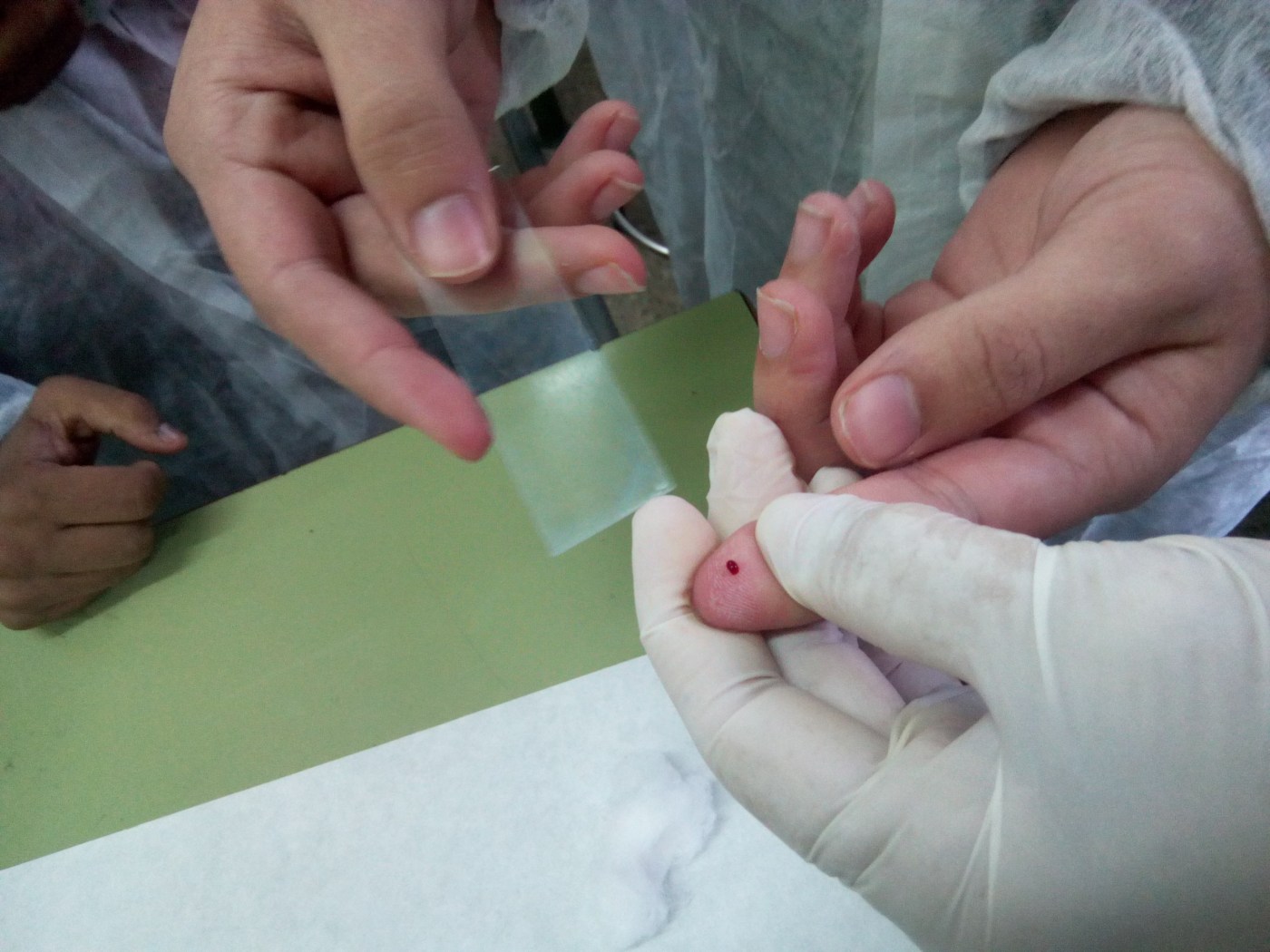 Para la misma, extrajeron una gota de sangre (utilizando material nuevo y descartable, lógicamente), y utilizando los reactivos correspondientes, además de aplicar los conocimientos adquiridos en la teoría, pudieron determinar cada uno su grupo sanguíneo (A, B, AB o 0) y su Factor: RH + ó RH -.