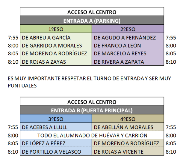 El alumnado entrará, a partir del lunes, escalonadamente siguiendo mismo orden de apellido que en las presentaciones: