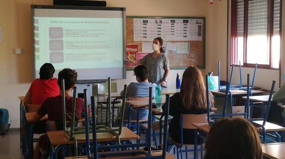 El pasado mes de octubre, la Asociación Páginas Violetas llevó a cabo el taller Comando VDG en los grupos de 3º ESO, con la proyección de un cortometraje sobre los diferentes tipos de violencia de género como la violencia física, la sexual, la psicológica y ciberviolencia. Después de la proyección, el alumnado participó en un coloquio y pudieron disfrutar y escuchar rapear a la ponente y rapera Angy Quadradito.