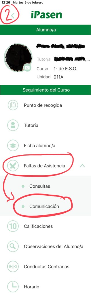 2. Una vez hecho esto, accedemos a una nueva pantalla donde debe seleccionarse Faltas de Asistencia y después Comunicación.