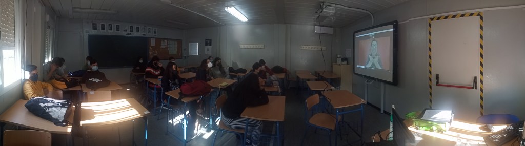 El alumnado recibió una explicación acerca de los orígenes del cine, destacando a los grandes inventores del mismo, como Geroges Melies y los hermanos Lumiere y también tuvieron tres prácticas orientadas a comprender aspectos clave del lenguaje audiovisual (el fuera de campo, el montaje, la óptica …), para comprender cómo actuaban sobre el espectador y también qué posibilidades creativas tenían, poniendo ejemplos extraídos tanto del cine como de YouTube o TikTok.