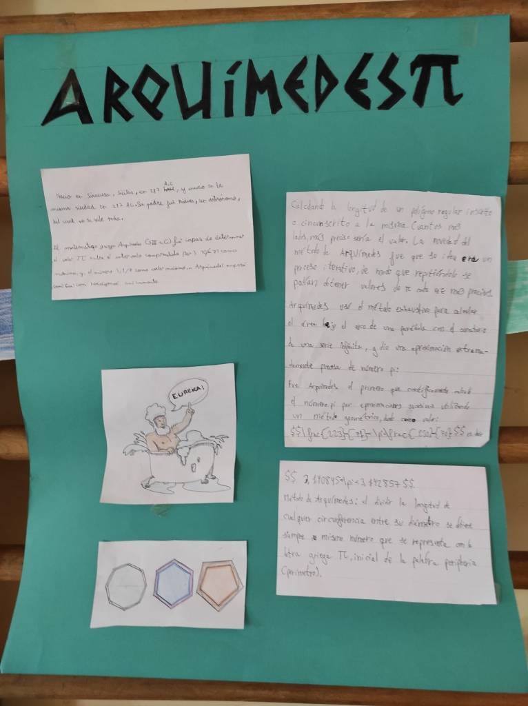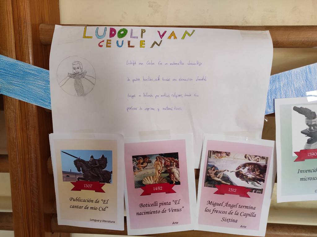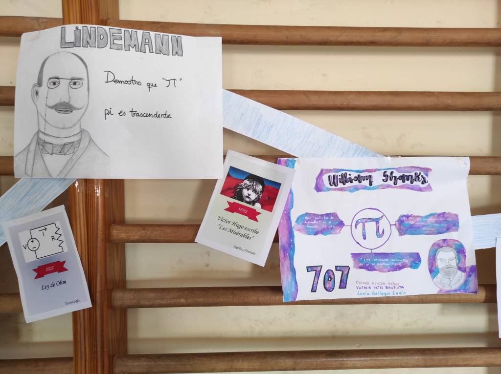 El alumnado de 1°A, B y C han elaborado una línea del tiempo sobre eventos relacionados con el número pi. Además, se han incluido varios eventos históricos relacionados con las diferentes asignaturas que se imparte en el centro.