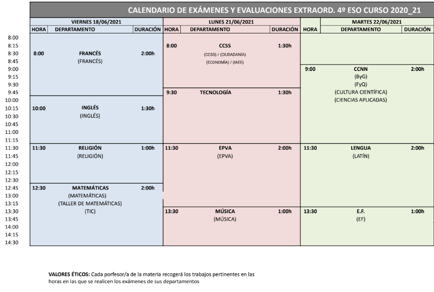 El calendario de exámenes evaluación extraordinaria 4ºESO: