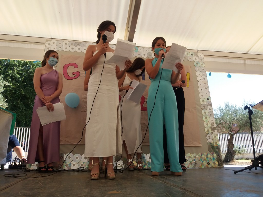 Como todos los años, la organización de este evento la lleva a cabo la Jefa del Departamento de Actividades Complementarias y Extraescolares, la profesora Viviana Griguol, quien quiere agradecer profundamente el apoyo prestado en todo momento por la Dirección del Centro, al Ayuntamiento por el préstamos y colocación del escenario y añadir que no se hubiera llevado a cabo sin la colaboración e insistencia de un grupo de alumnas de 4º de ESO que no querían quedarse este curso sin su Acto de Graduación, lo que ocurrió el curso pasado debido a la pandemia. Sólo por citar algunas de ellas: Erika Gimeno, Clara Espinosa, Alba Burgos, Paloma Álvaro, ….