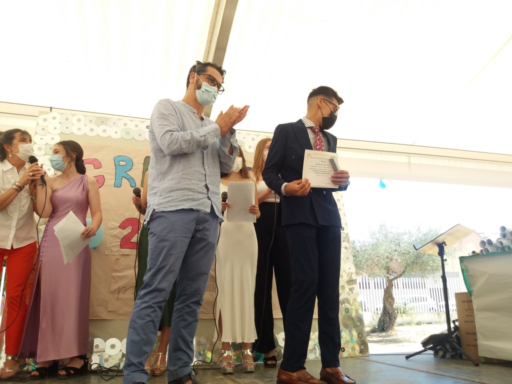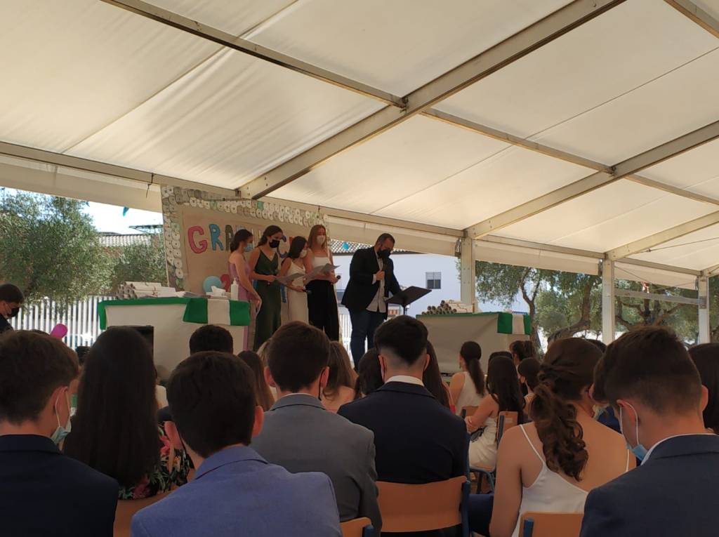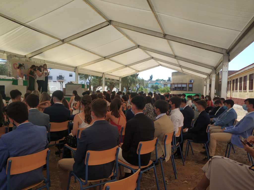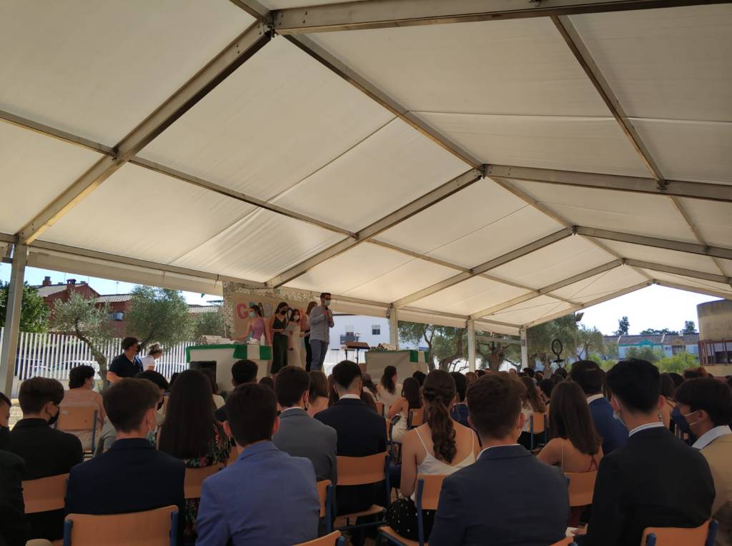 El pasado 24 de junio tuvo lugar el Acto de Graduación de la promoción 2016-2017. Debido a la pandemia hubo que incluir muchos cambios: se celebró bajo la carpa de nuestro instituto, con mascarillas, distancia de seguridad, y lo más llamativo: sin la asistencia de los familiares. Sin embargo, gracias a las nuevas tecnologías, muchas de ellos pudieron seguir la ceremonia en directo (y que aún podemos verla), pinchando en el siguiente enlace: