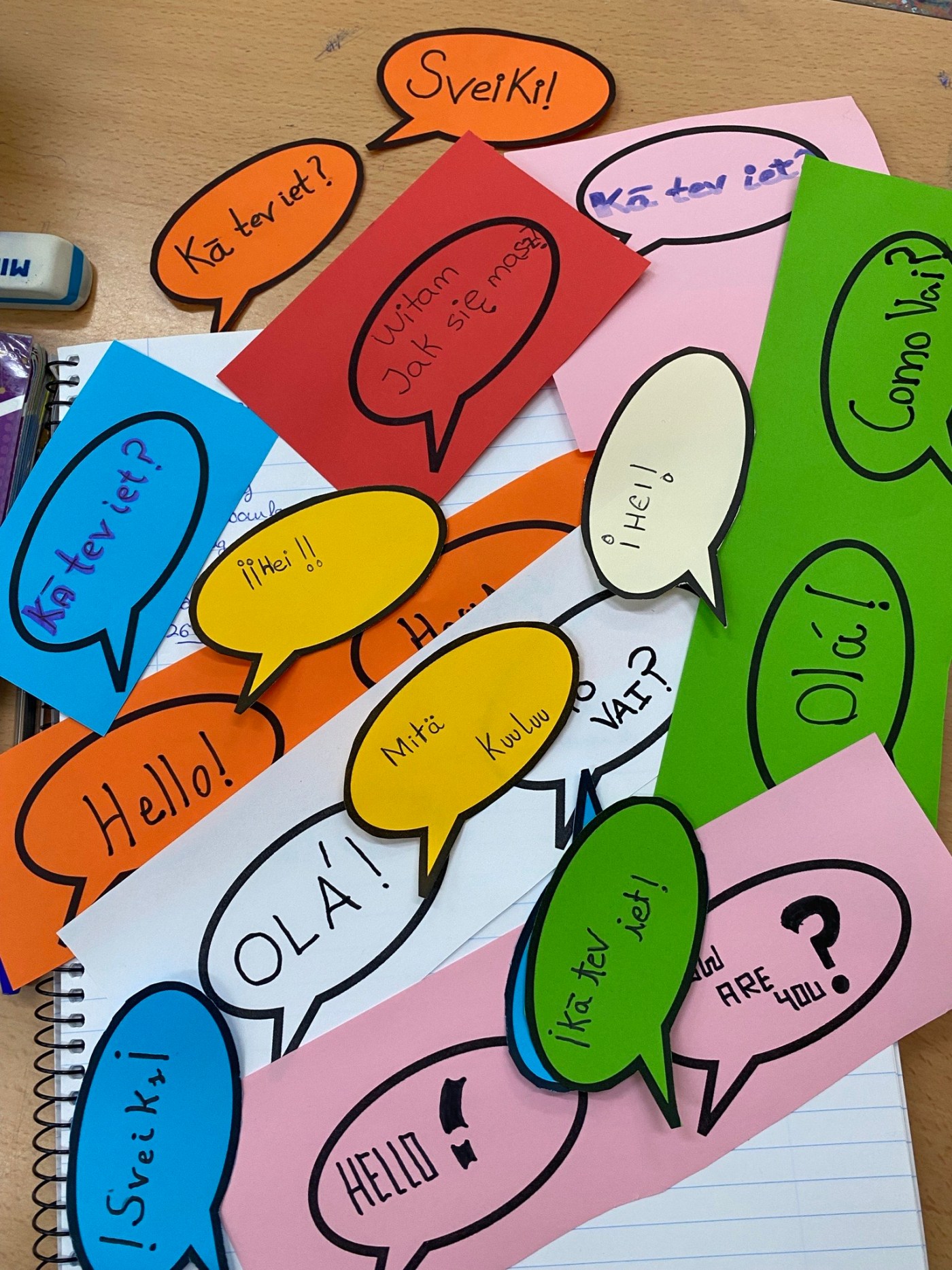 Con motivo del Día Europeo de las Lenguas que se celebra cada año el 26 de septiembre, el alumnado de 3ºESO C y D ha elaborado unos bocadillos con los saludos en los idiomas hablados en el proyecto Erasmus + ‘Real Fooding Challenge’ que se está desarrollando en nuestro centro: inglés, español, polaco, finés, letón y portugués. Después, los estudiantes que viajarán a finales de Octubre a Moimenta da Beira han pegado los carteles alrededor del tablón de Erasmus + corner y se han hecho la foto de grupo.
