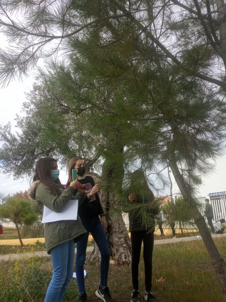 Los últimos días del pasado trimestre, el alumnado de 1°A y 1°B de la asignatura Biología y Geología impartida por la profesora Viviana Griguol salió al patio del instituto a la zona donde hay pinos, resultado de la campaña de reforestación «Crece con tu árbol» del curso 2009-2010, que el propio alumnado de dicho curso plantó.