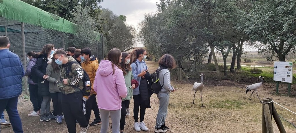 Comenzó el recorrido con la visita a La Cañada de los Pájaros, un entorno natural protegido donde el alumnado pudo apreciar una gran variedad de aves autóctonas y también alóctonas, siempre escuchando las interesantes explicaciones de monitores especializados que ayudaron a entender las características, los modos de vida y la problemática a la que se enfrenta dicha fauna.