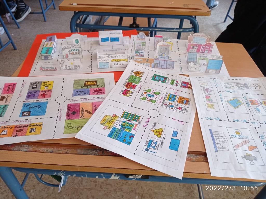 El alumnado de 1º ESO B ha realizado en la asignatura Expresión Oral en inglés estos mapas tan bonitos y creativos para practicar las direcciones en la lengua anglosajona. ¡Son unos artistas!
