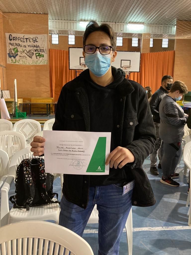 Además, Felipe Martínez Naimi, alumno de 4ºESo del IES Virgen del Rosario, ha sido reconocido como el mejor orador del certamen.