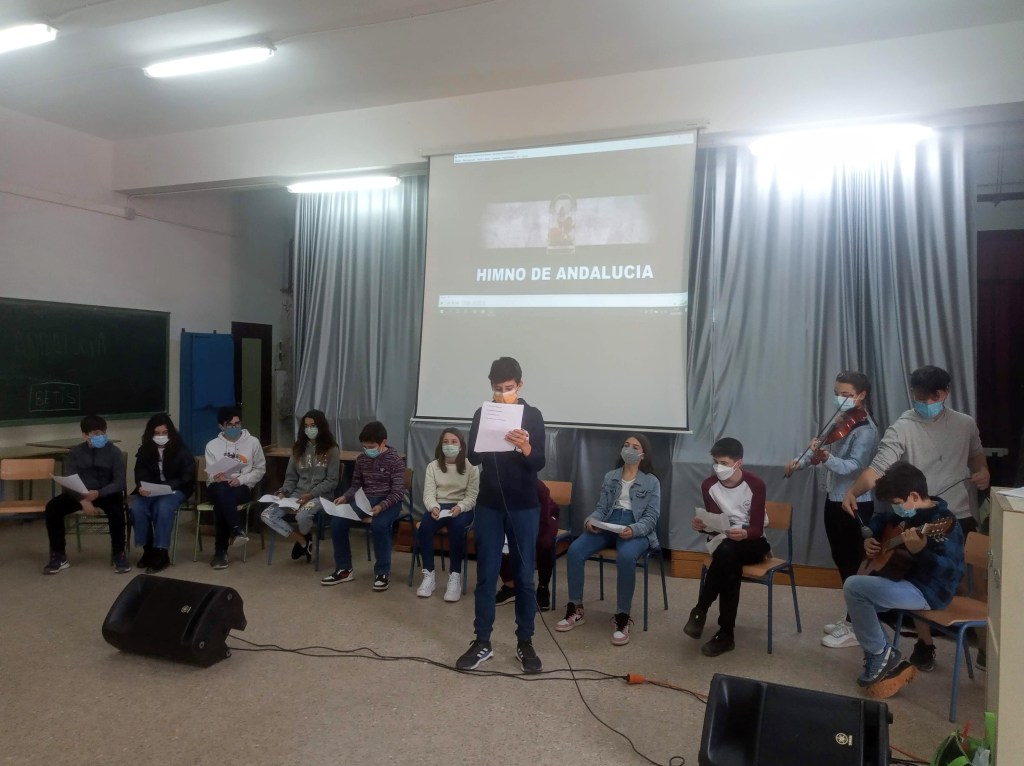 - SUM: donde se cantó el himno y se proyectaron videos explicativos de la historia de Andalucía y por qué se conmemora el Día de Andalucía el 28 de febrero. También el alumnado de 1º de ESO dio recital poético-musical de Andalucía.