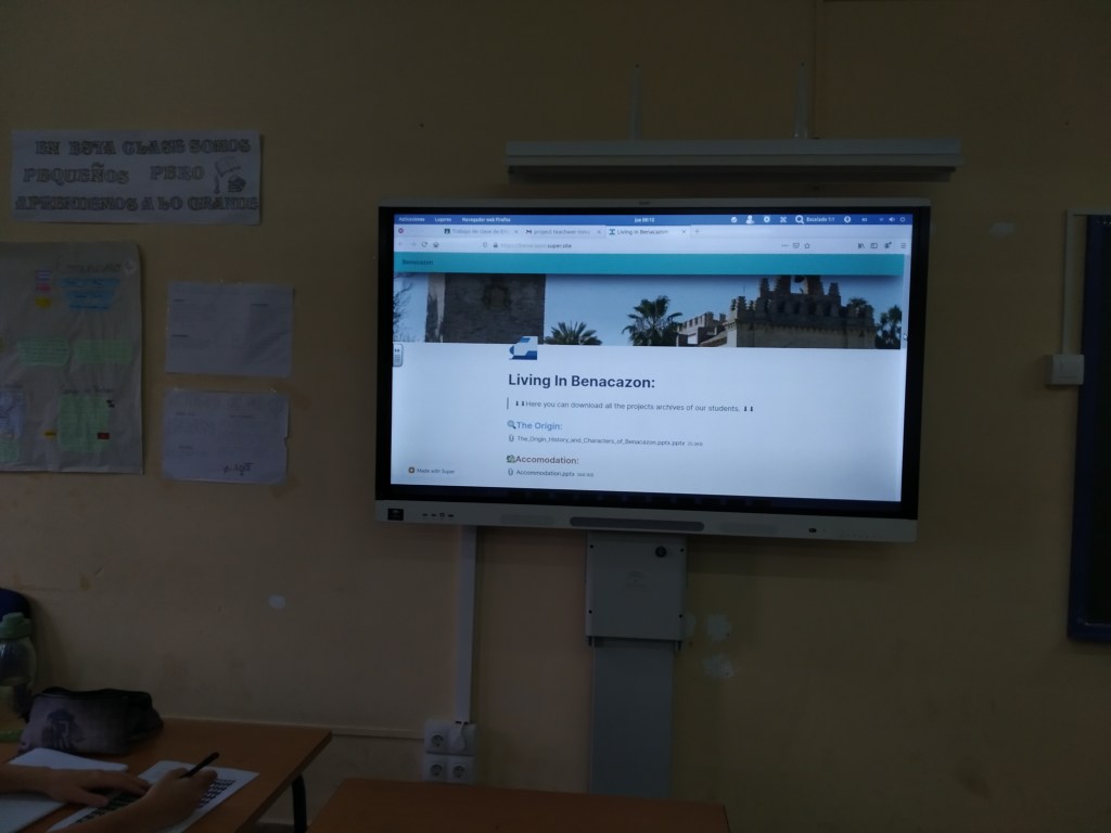 El resultado final del trabajo llevado a cabo en grupos en el aula ha sido la creación de una página web de turismo en inglés de la localidad de Benacazón.