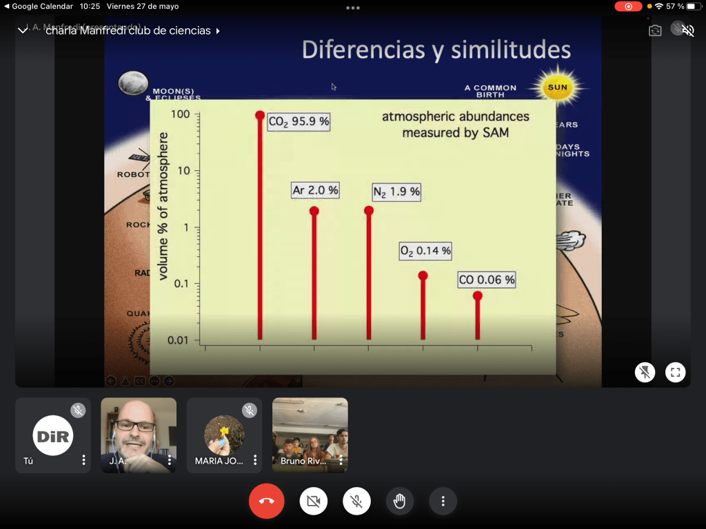 A pesar de su apretada agenda, tuvo la gentileza de impartir a nuestro alumnado una interesantísima charla a través de meet sobre la búsqueda de vida en marte y, al final de la misma, responder a todas sus preguntas.