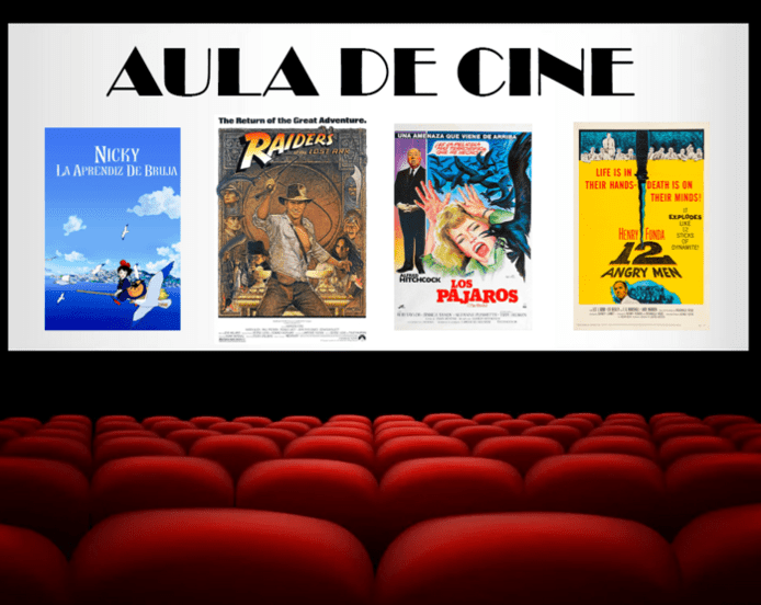 Aula de Cine es un programa que pretende dar a conocer a nuestros alumnos y alumnas grandes títulos del séptimo arte, y para ello se ha realizado una selección de cuatro películas (una por nivel) para que se vean y se analicen en las horas de tutoría. Son las siguientes: