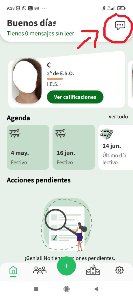 La clave iANDE la tienen en la aplicación iPasen, pinchando en el icono del sobre, arriba a la derecha.