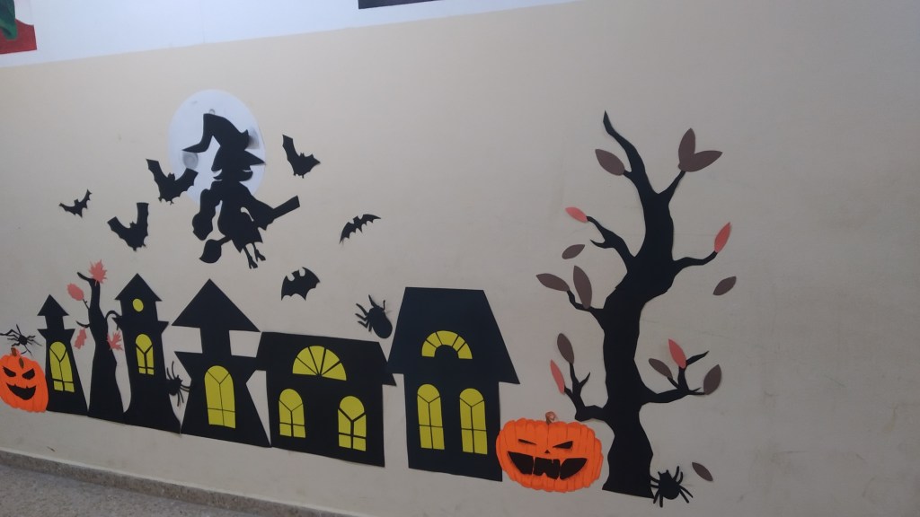 Se decoró el hall del centro y las aulas con temática de Halloween siendo muy