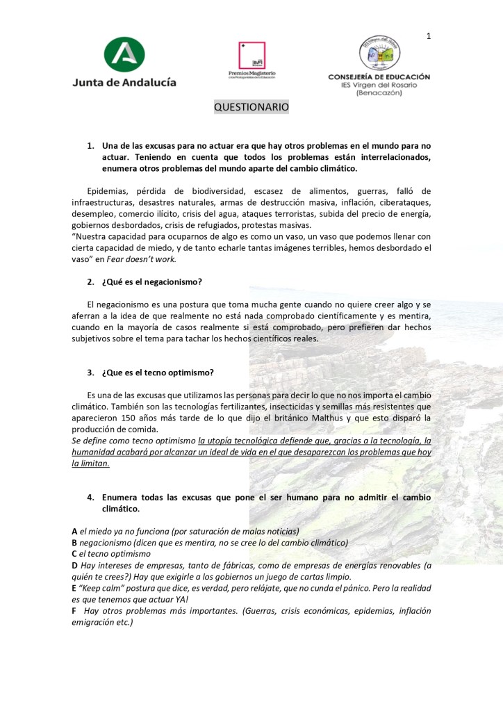 - Elaboración conjunta de un cuestionario sobre el video.