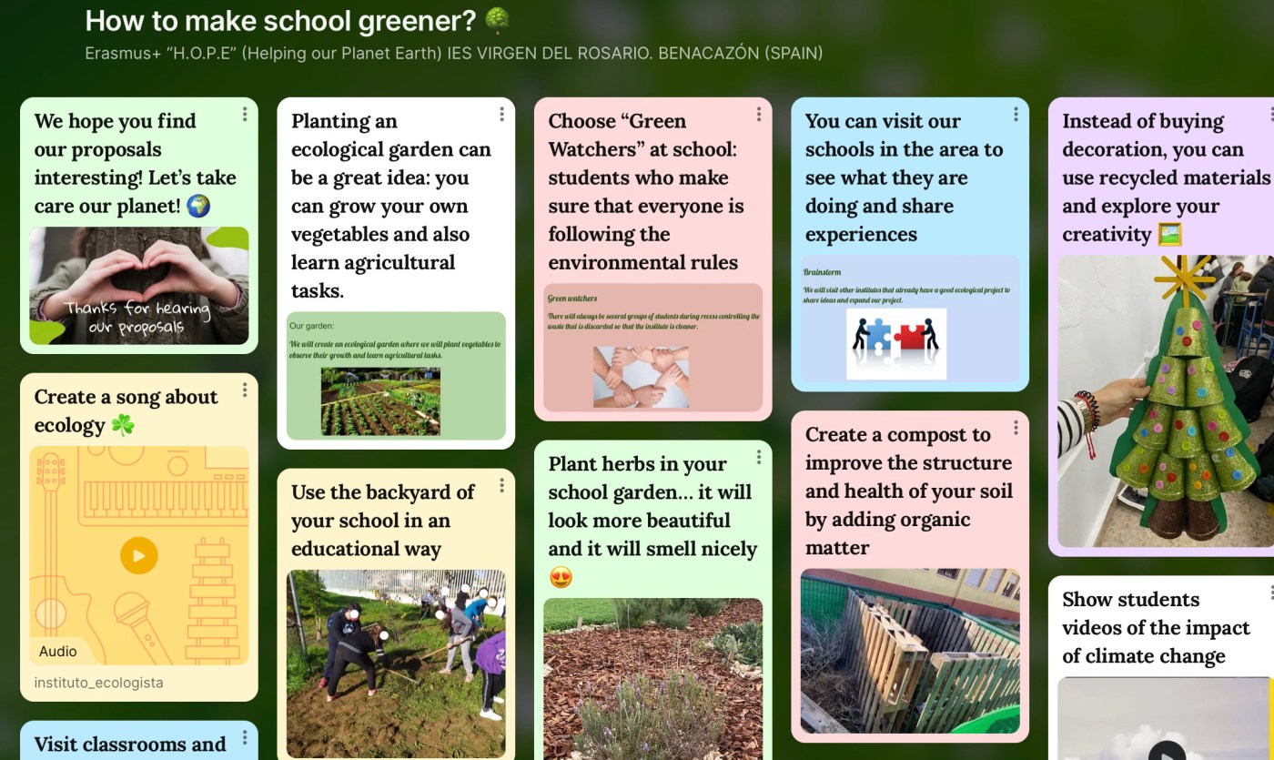 Turquía, el alumnado de 4º ESO de inglés ha realizado la actividad correspondiente a este mes, titulada “How to make school greener? / ¿Cómo hacer nuestro centro más verde?”. Dicha actividad ha consistido en buscar ideas para hacer de nuestro instituto un centro más ecológico y más concienciado con el planeta. Una vez más, nuestro alumnado nos ha sorprendido con la capacidad de inventiva y creatividad, ¡Hasta han compuesto una canción! Todo esto ha sido recogido en un padlet que podéis visitar en el siguiente enlace: