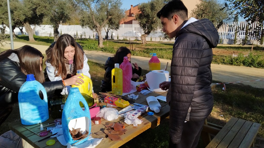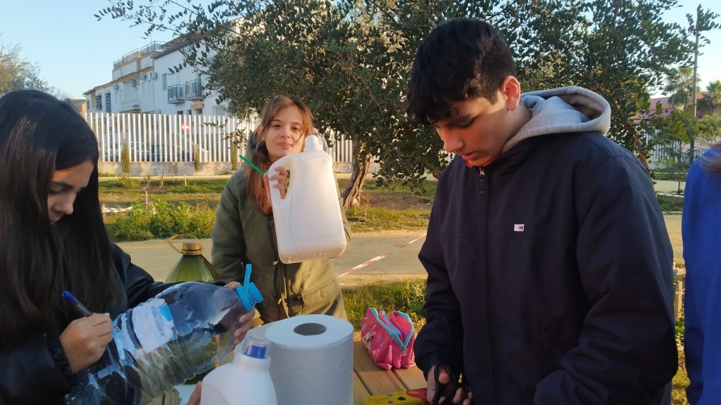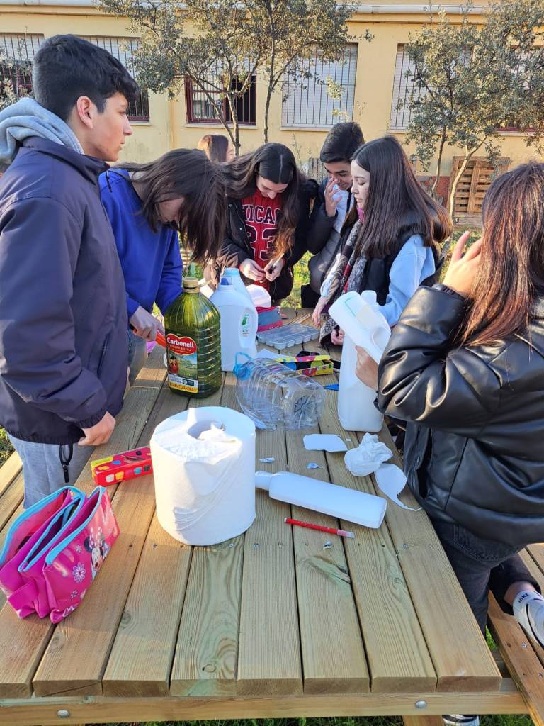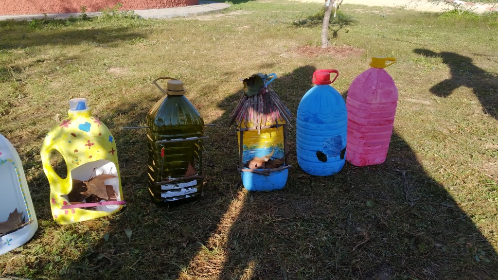 hacer un taller de casas de pájaros con botellas de plástico y darles así un