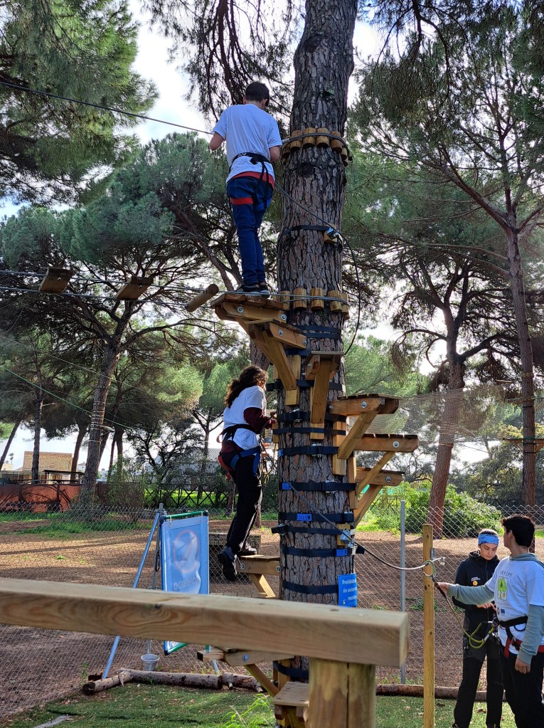 El jueves 9 hay una visita guiada en inglés a la Planta Solar de Sanlúcar la Mayor, para que el alumnado sepa dónde se produce la energía eléctrica, especialmente las energías renovables. Allí se entregan camisetas con el logo del Proyecto Hurry Up! patrocinadas por el Excelentísimo Ayuntamiento de Benacazón. Con las camisetas puestas el equipo se encamina al Corredor Verde de Sanlúcar donde se realiza la actividad de plogging (recogida de basura con deporte), pese a las inclemencias del tiempo. Por la tarde el alumnado realiza un circuito multiaventuras en el Bosque Suspendido en los Pinares de la Juliana de Bollullos de la Mitación. Después del ritmo de actividades frenético de todo el día, el grupo Erasmus y las familias españolas tuvieron un momento de convivencia en el SUM de nuestro centro. Allí se repartieron cuadernos elaborados con el papel jaspeado del taller del lunes, y las certificaciones de participación en nuestro centro a los estudiantes y profesorado polacos.