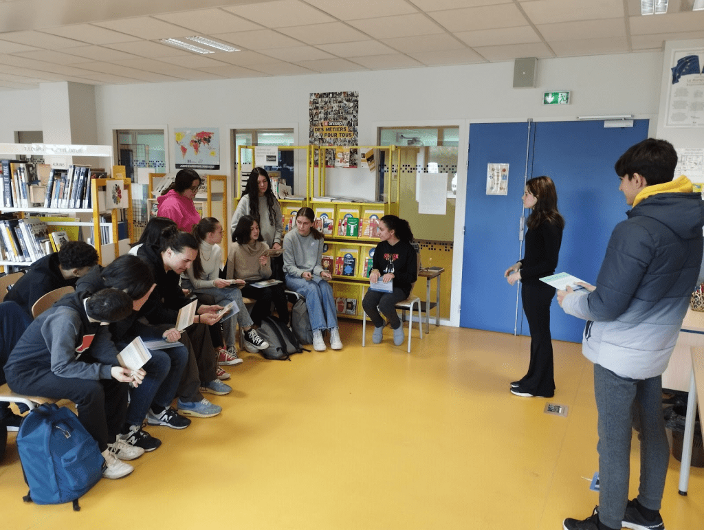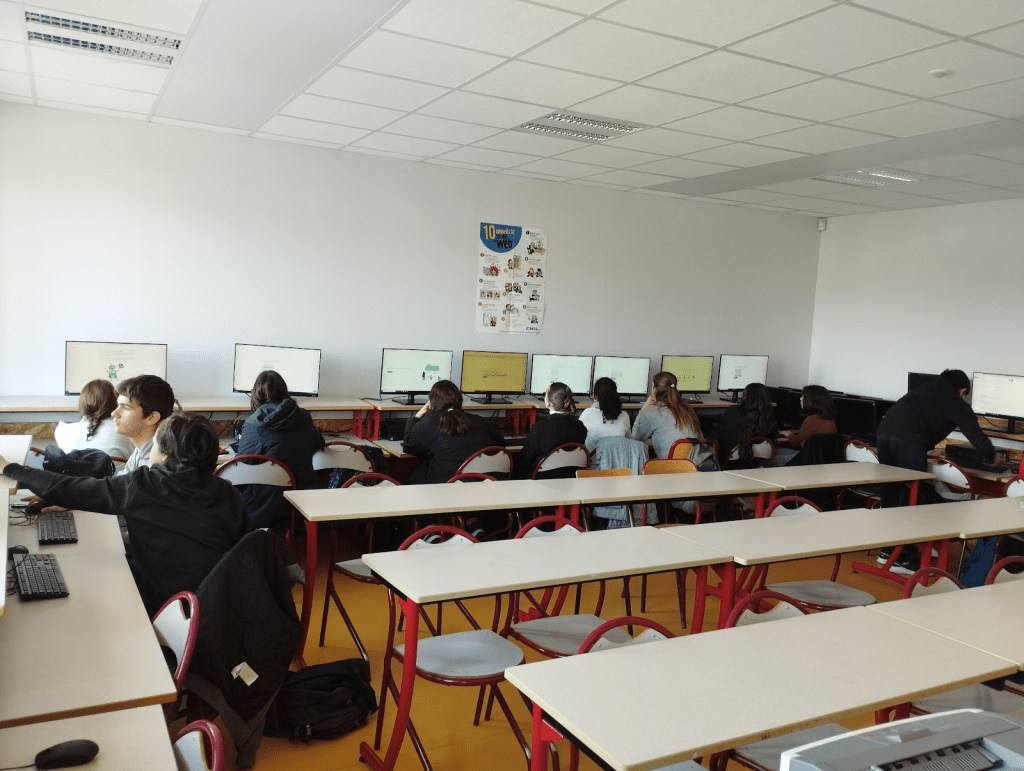 El día martes el alumnado asistió a las clases de sus correspondientes compañeros y compañeras, donde pudieron observar la dinámica de las mismas, participar en ellas y relacionarse con sus homólogos franceses.