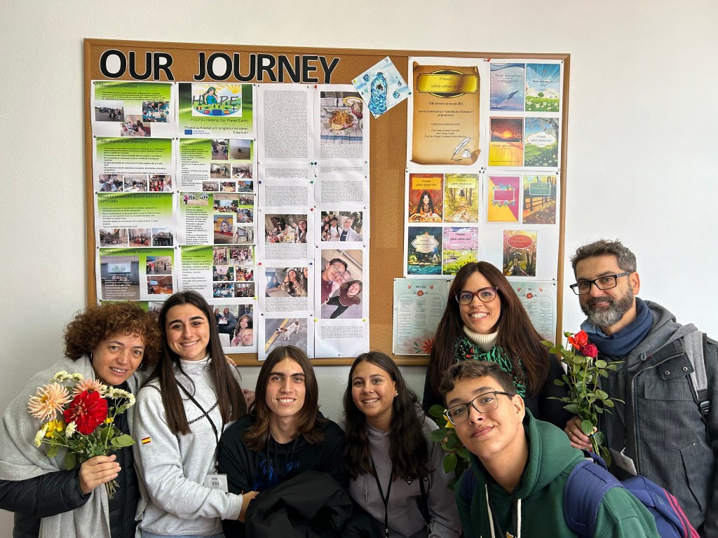 El segundo proyecto Erasmus+ que lleva a cabo el IES VIRGEN DEL ROSARIO titulado H.O.P.E (Helping our Planet Earth) y que ha estado centrado en concienciar a nuestro alumnado en los diferentes tipos de contaminación que nos rodean ( del suelo, agua, aire y la acústica) además de buscar soluciones para reducir sus impactos, tocó a su fin la semana en la ciudad de Buruinesti, al noroeste de Rumanía. La delegación española representando a nuestro centro estaba formada por las coordinadoras del proyecto, Teresa Bejines y Patricia Moreno, además de nuestro director, Bruno Rivera y 4 estudiantes de 4º de ESO. Los 7 se reunieron con sus compañeros y compañeras de Turquía y Finlandia en la capital rumana para, junto con la coordinadora anfitriona, visitar la ciudad y al día siguiente emprender el viaje de 6 horas hasta Roman, donde las estudiantes rumanas acompañadas de sus familias les recibieron con una calurosa y emotiva bienvenida digna de cantantes de rock. De allí, fueron a las casas donde fueron acogidos con regalos y dulces típicos del país. Pero ahí no quedaron los sorpresas. El lunes tuvo lugar la ceremonia de apertura en el centro, la Școala Gimnazială Gheorghe Patrascu de Buruinesti y el equipo de H.O.P.E pudo admirar como todo el alumnado al completo se había vestido con la ropa tradicional rumana en su honor. Dulces, ramos de flores, canciones y bailes tradicionales siguieron en la fiesta y hasta nuestra delegación fue entrevistada para la televisión local. A continuación, los 24 estudiantes estuvieron haciendo juegos para romper el hielo, conocerse y crear sentimiento de grupo, que fue latente desde el primer hasta el último momento. Presentaciones culturales sobre las tradiciones de cada país y los personajes más destacables siguieron con la jornada para terminar en el patio realizando la ya clásica actividad de plantar árboles en cada movilidad. La tarde fue libre con las familias donde tantos estudiantes como familias pasaron una tarde divertida en la bolera. El martes el grupo hizo su primera excursión. En esta ocasión se desplazaron hasta las impresionantes montañas de Bicaz donde pudieron visitar la presa de la localidad y aprendieron su funcionamiento. Acto seguido dieron dar un paseo en barco por el lago que lleva el mismo nombre y tomaron un chocolate caliente para entrar en calor. Después de almorzar y comer dulces típicos del lugar, admiraron Bicaz Gorge, o lo que es lo mismo, el impresionante Lago Rojo. Llegó la tercera jornada y el grupo comenzó con una clase de informática para después pasarla trabajando en el proyecto y en el hilo conductor de la movilidad, la contaminación del agua, sus problemas y posibles soluciones para reducirla. Previamente, presentaron sus conclusiones sobre la contaminación acústica, que se trabajó en Finlandia. A media mañana realizaron talleres de igualdad donde el alumnado H.O.P.E crearon un taller donde plasmaron sus manos con tintas de colores. Llegó la hora de comer y el grupo al completo se trasladó hasta el Castillo de Miclauseni donde pudo degustar un menú a base de verduras que los mismos monjes cosechan en los alrededores para luego visitar el castillo, construido por una familia noble del lugar. La tercera y última excursión tuvo lugar el jueves donde las 4 delegaciones pasaron el día en Iasi, antigua capital de Rumanía visitando el Jardín Botánico, la Universidad y el Palacio de la Cultura. Por la noche tuvieron una cena acompañada por un tenor y una violinista de la Orchesta Nacional de Bucarest y que terminó con todo el grupo entonando bailes tradicionales de sus países. El viernes por la mañana los estudiantes de H.O.P.E en grupos multiculturales hicieron unos posters resumiendo estos dos años de proyecto y luego fueron sorprendidos con un desayuno junto con toda la comunidad educativa del Școala Gimnazială Gheorghe Patrascu que les despidió bailando canciones rumanas. Sin duda, fue un bonito y emotivo broche a este proyecto. Desde el IES VIRGEN DEL ROSARIO queremos agradecer a todas las familias y alumnado implicado en el proyecto H.O.P.E (Helping our Planet Earth) por haber acogido con tanto cariño a los estudiantes extranjeros el curso pasado y por haber tenido tan buen comportamiento en todas las movilidades. Además, nos sentimos muy orgullosos ya que todo el trabajo duro que implica un proyecto de esta envergadura ha merecido la pena al ver a nuestros estudiantes crecer como personas, mejorar su inglés, aprender otras culturas y, en definitiva, a ser a ser mejores ciudadanos europeos.
