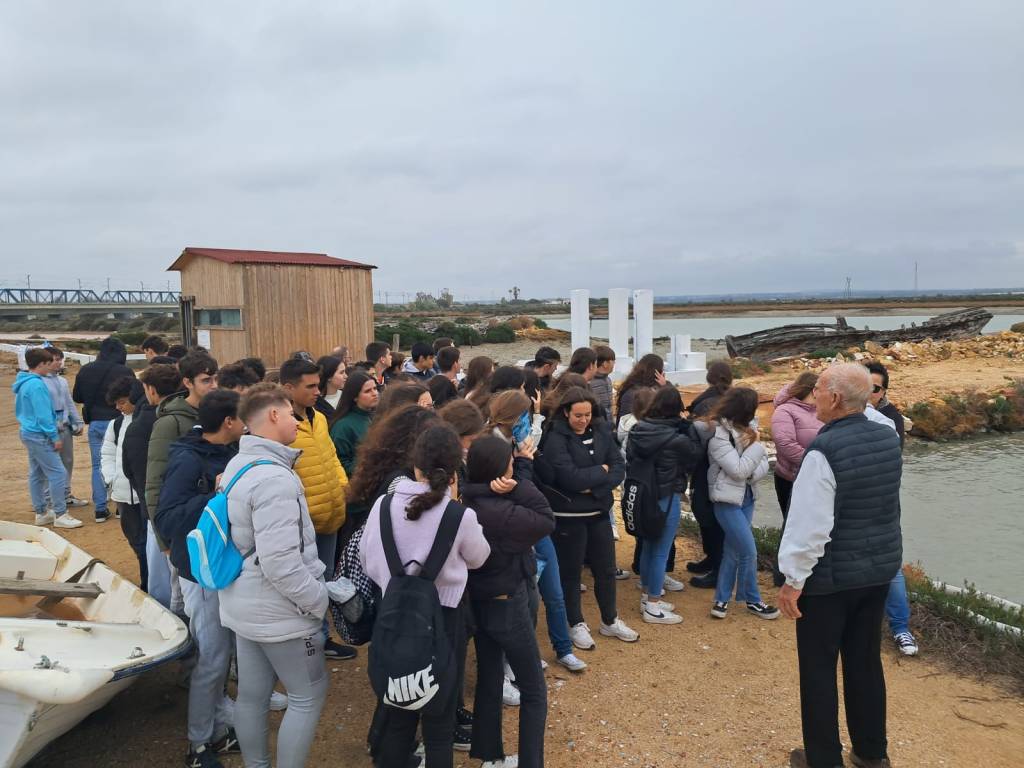 Primeramente visitaron las Salinas de San Vicente, en San Fernando, unas instalaciones donde se sigue elaborando sal ecológica y natural, siguiendo el método tradicional heredado de los fenicios y romanos. El alumnado también recibió una explicación sobre la flora y fauna del lugar.
