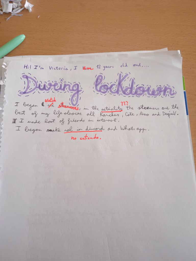 acerca de cómo era un día a día en su confinamiento. También cada alumno