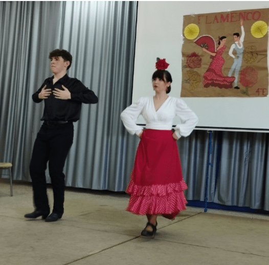 - Evolución del flamenco: el alumnado de cada nivel asistió al SUM, donde nuestros presentadores María Salas e Ishaq Oulji fueron explicando los distintos palos de flamenco y nuestros bailaores Rocío Valero y Francisco Rojas acompañaron de manera deslumbrante con actuaciones para mejor entendimiento de dicha evolución.