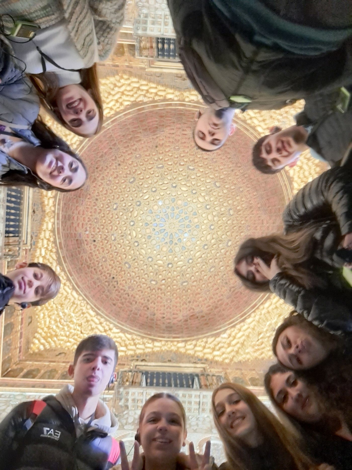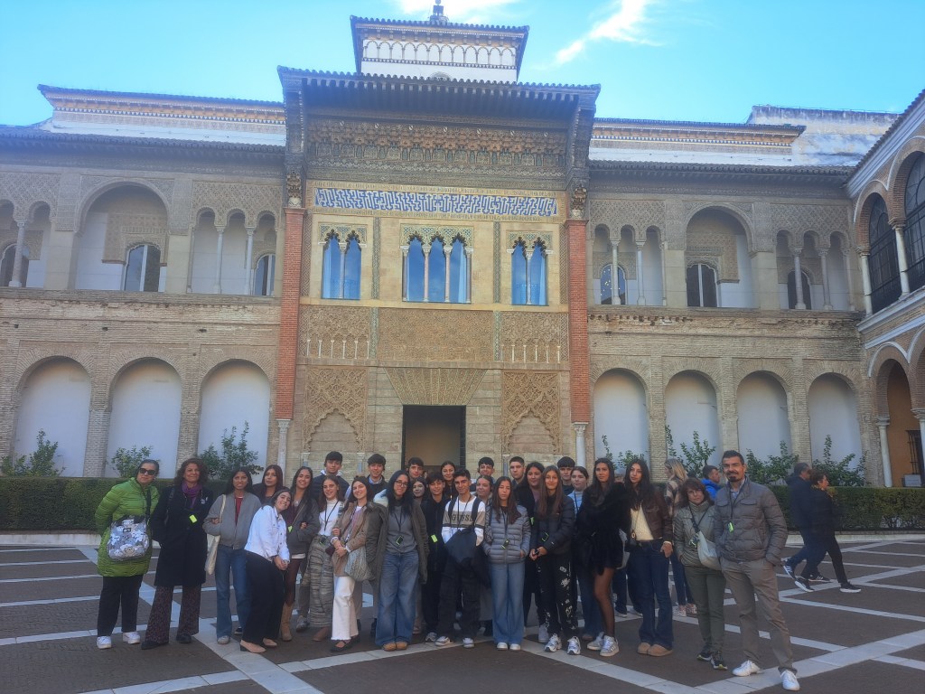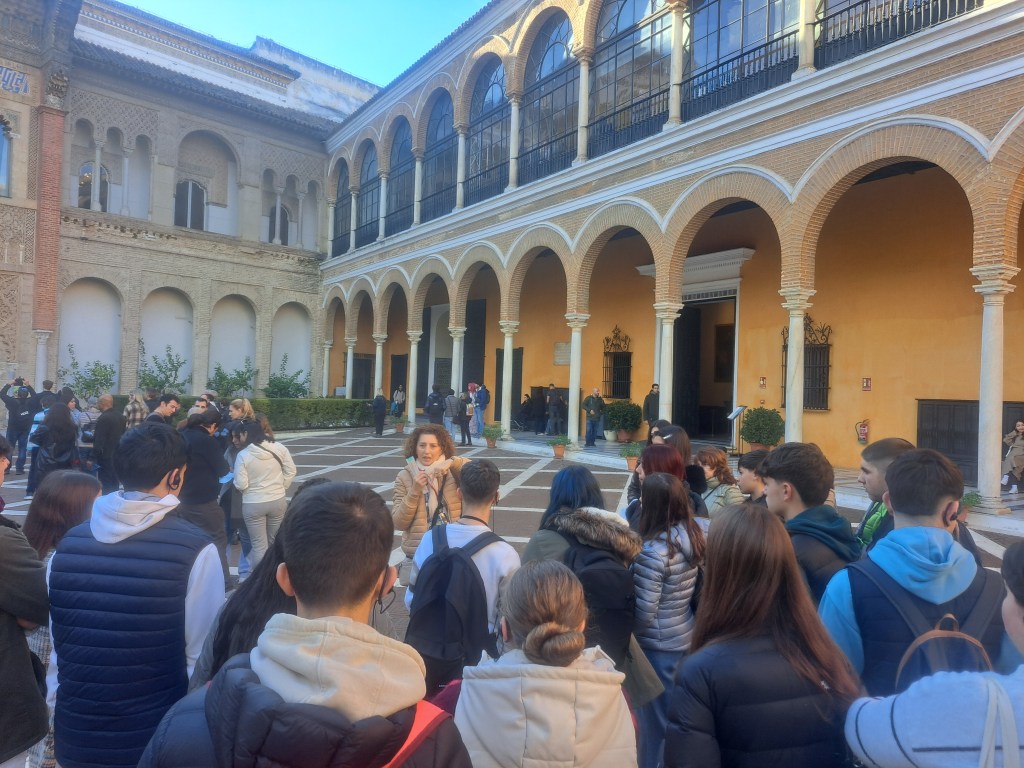 El martes 25 de noviembre del recién pasado año, la Comitiva Erasmus “The Wonderful Poem of Nature” se pone rumbo a nuestra hermosa ciudad de Sevilla, que puede ser considerada como un hermoso poema; no hecho por la naturaleza sino por la mano del ser humano. Además Sevilla, es una ciudad que es capaz de evocar e inspirar la más bella de las poesías. El alumnado y profesorado acompañante realiza una visita guiada en inglés a los monumentos enclavados en el centro de la capital hispalense: los Reales Alcázares y la Catedral. La visita se efectuó en este orden: en después del Alcázar se realizó un recorrido a pie, también con guía en inglés, por el antiguo barrio judío de Santa Cruz para desembocar en la Calle Mateos Gago y vislumbrar la hermosa Catedral. El término de la visita de la Catedral se remata con una subida al soberbio campanario renacentista de la Giralda, diseñado por Hernán Ruiz, y que viene a sustituir al antiguo Yamur del minarete de la antigua mezquita musulmana.