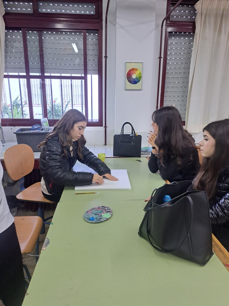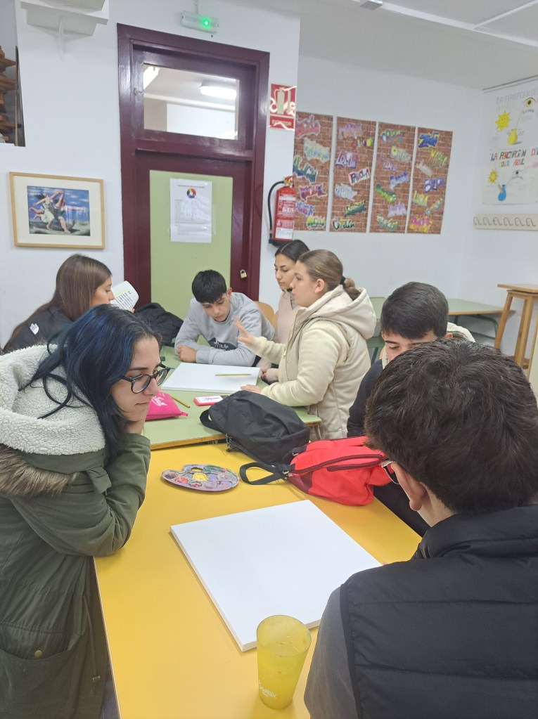 El taller fue introducido por la profesora de Inglés Inma Navarro, quien explicó el concepto de poesía visual y luego explicó la dinámica de grupo y trabajo. De esta forma, nuestro alumnado y el alumnado italiano se pusieron en grupos de 4 y, sobre un lienzo, reflejaron conceptos muy interesantes para elaborar obras estéticamente bellas. Las obras fueron expuestas al día siguiente, donde el alumnado tuvo la oportunidad de explicar al resto del grupo lo que querían expresar con sus lienzos.