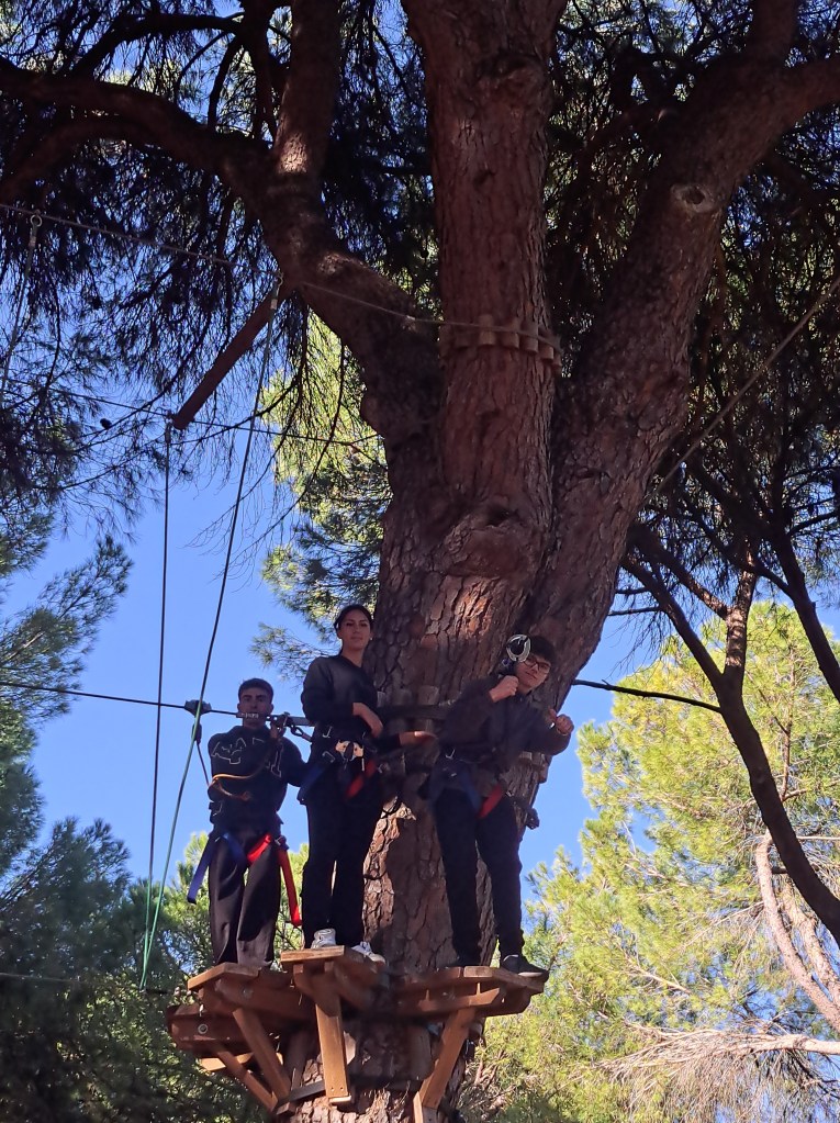 Y con la satisfacción de su creación (Visual Poetry) el grupo tiene ganas de pasar el resto de la mañana (27-12-25) viviendo aventuras en el Bosque Suspendido de la Juliana. Este es el primer parque montado en árboles de Andalucía y además posee un gran valor desde el punto de vista ecológico por su singularidad natural y por ser un lugar de paso de aves hacia Doñana.