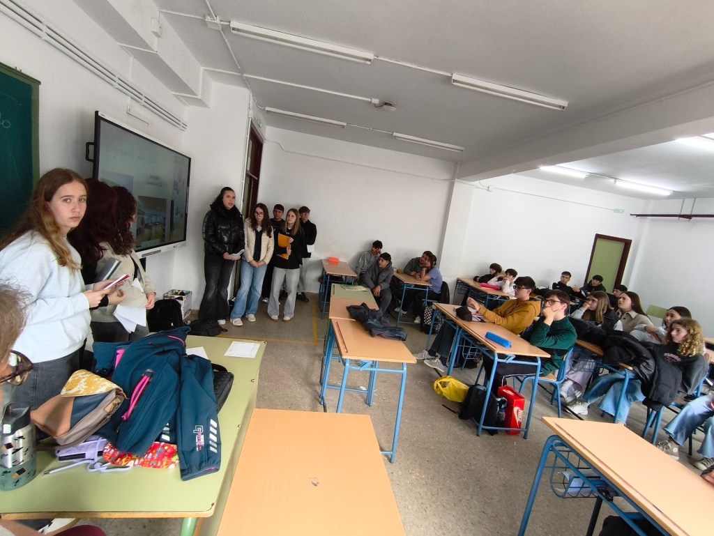El primer día terminó en la clase de 3º D, donde el alumnado francés explicó a nuestro alumnado sus costumbres, cómo es su jornada escolar, etc. y también hicieron una presentación sobre la importancia del agua, eje de nuestro Proyecto. Luego pudieron interactuar, preguntando y respondiendo bidireccionalmente, lo que fue muy enriquecedor.