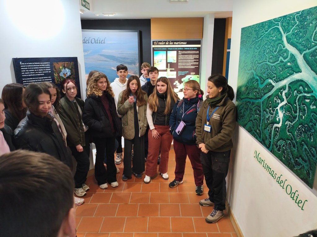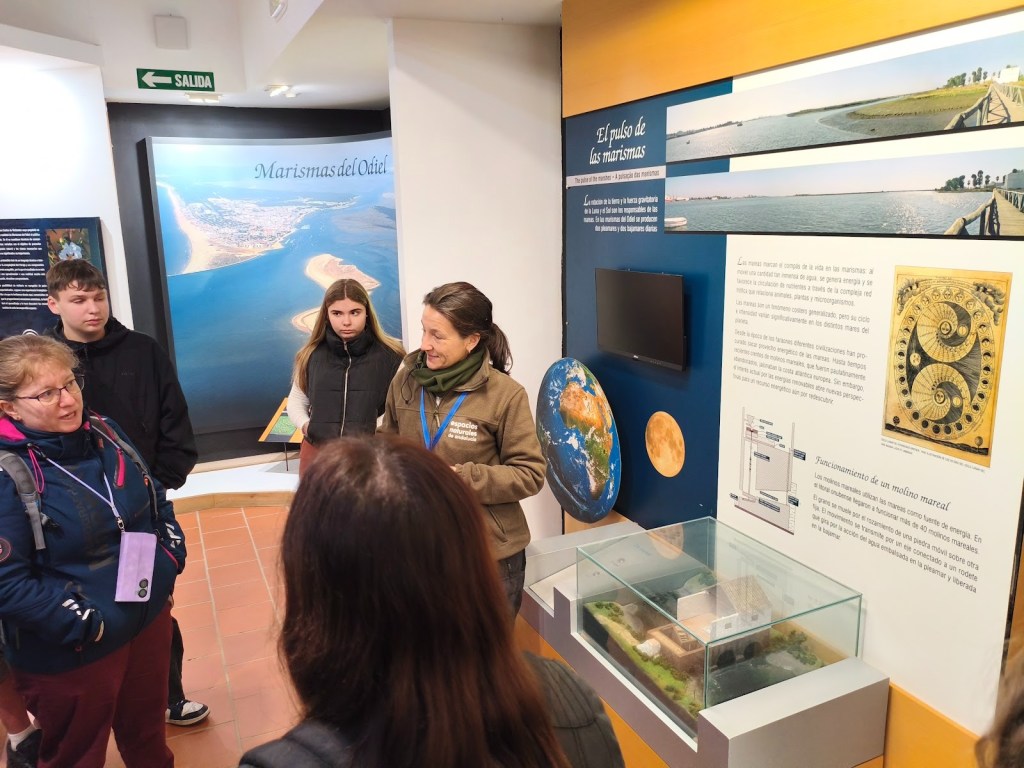 El segundo día tocó visitar las Marismas del Odiel. Primeramente acudimos al Centro de Visitantes Anastasio Senra, donde una guía especializada explicó que es Reserva de la Biosfera por la UNESCO y es Zona de Especial Protección para las Aves. Ubicado en la desembocadura del río Odiel, está integrado en el complejo estuario que forman éste con el Tinto, dando lugar a una extensa variedad de paisajes.