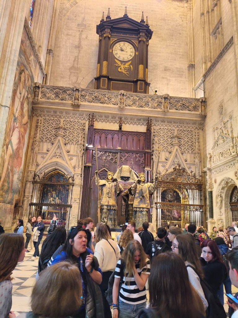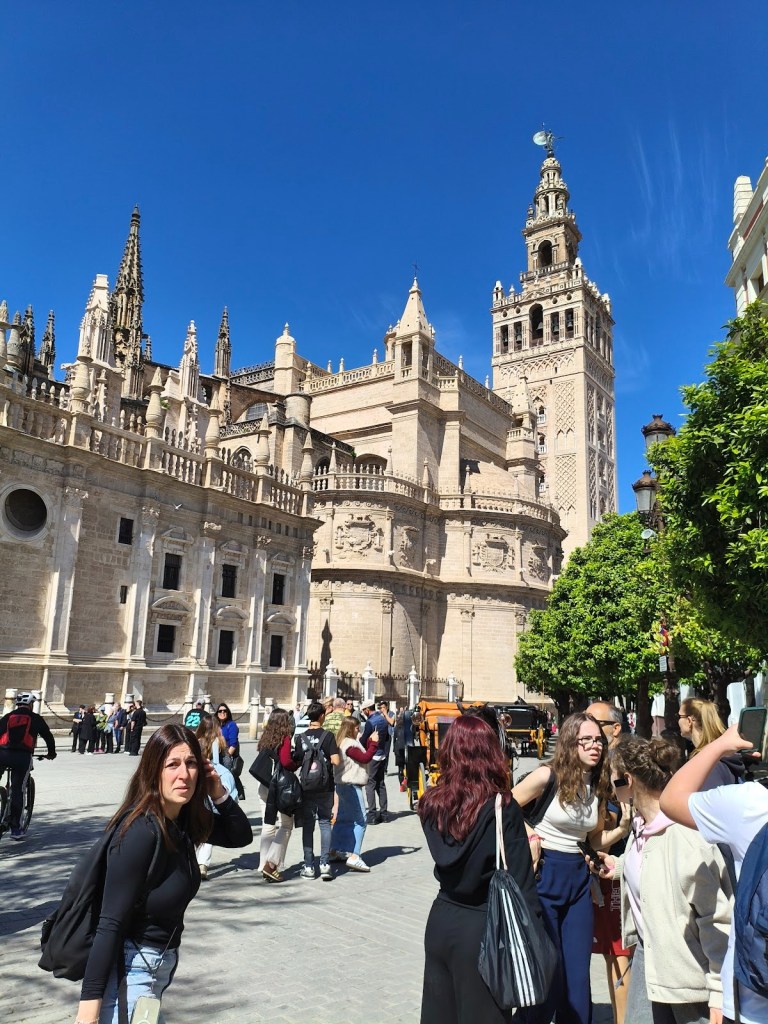 A continuación, nos dirigimos a otra joya de la ciudad: la Catedral, donde nuestro alumnado y profesorado pudieron escuchar las explicaciones de la guía y subir la Giralda.