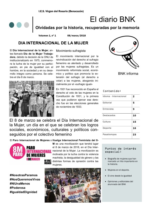 Una de las grandes revoluciones del sigo XX ha sido la de la liberación de la mujer y España fue uno de los países pioneros bajo el régimen democrático y parlamentario de la Segunda República. Los alumnos de 2º PMAR, 3º y 4º de la ESO han investigado la lucha por la igualdad y por... Leer más →