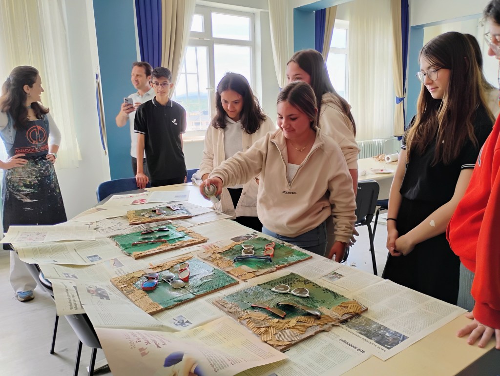 Nuestro proyecto se llama “Helping our planet earth through art” y hemos trabajado diferentes actividades y talleres a lo largo del curso conjuntamente con el centro turco.