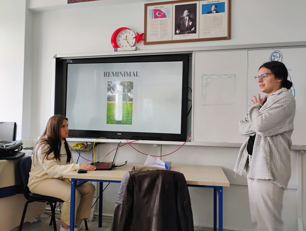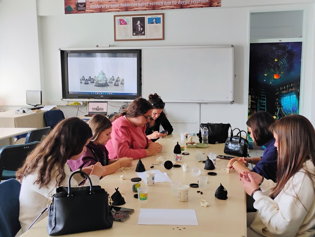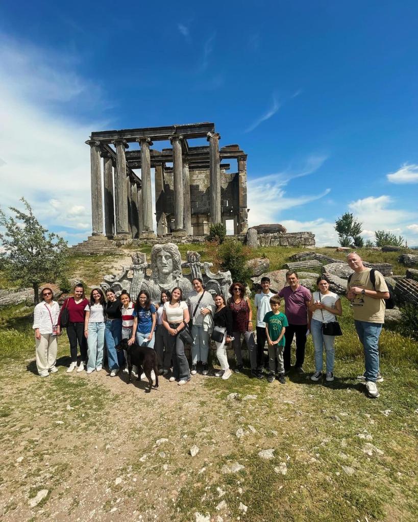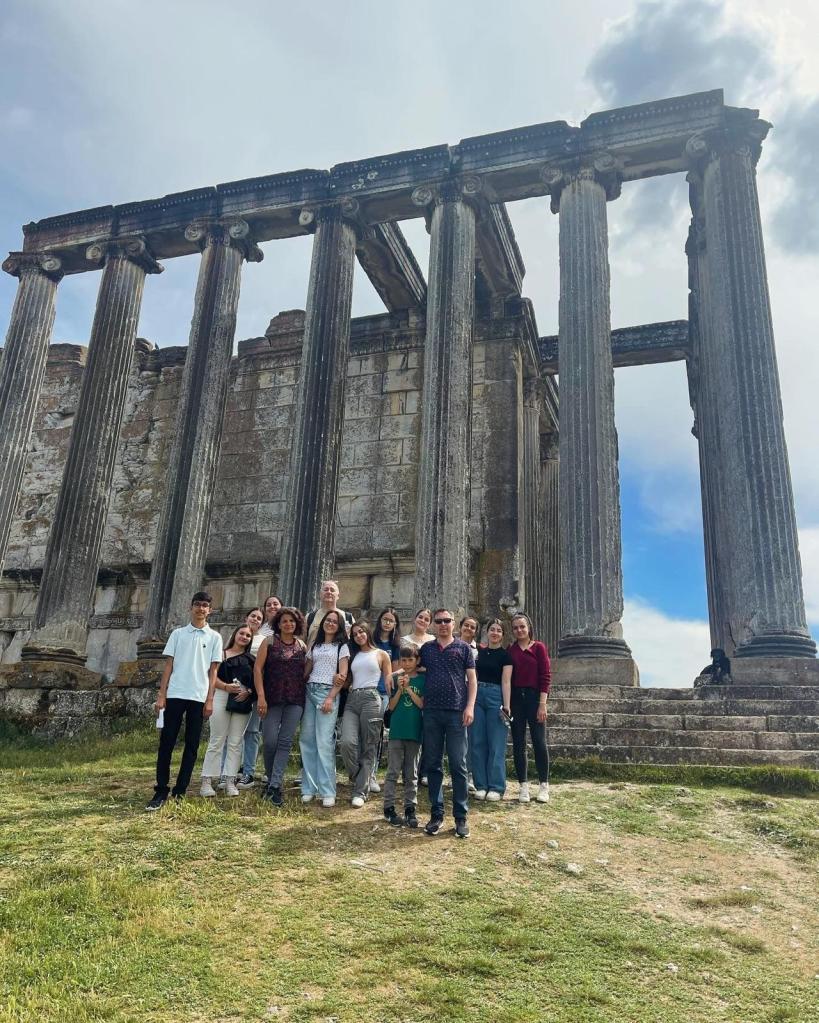 La recepción en el instituto fue muy grata. El profesorado y la dirección nos recibieron con los brazos abiertos y nos mostraron las aulas, proyectos que llevan a cabo, realizamos juegos para romper el hielo, etc. Las mañanas las pasamos en el centro realizando actividades y talleres medioambientes y artísticos. Al mismo tiempo, pudimos asistir a algunas clases de inglés y otras asignaturas y ver el funcionamiento de las lecciones y del centro en general. Por las tardes, además de estar con las familias, hemos visitado otras ciudades cercanas donde hemos aprendido más sobre otros lugares artísticos, como el museo de arte moderno en Eskişehir y sus antiguas calles o la ciudad antigua donde pudimos conocer el Templo de Zeus.