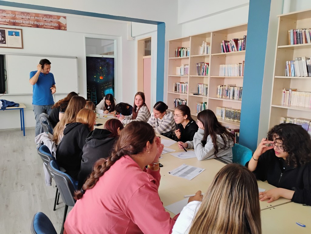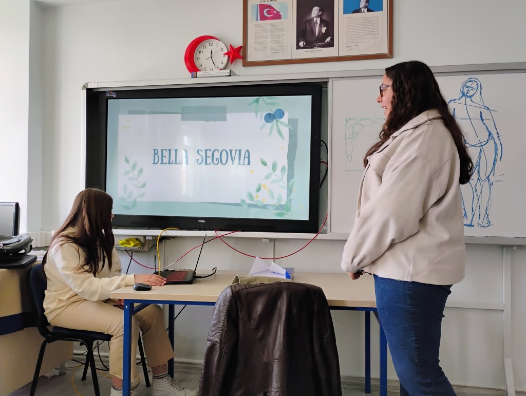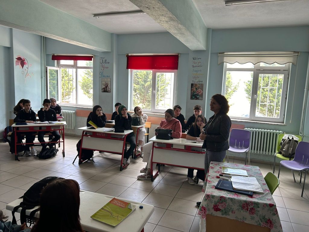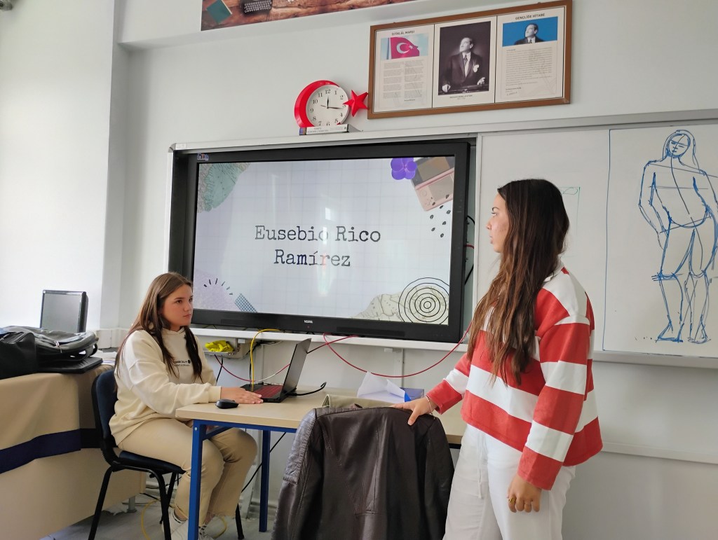 La recepción en el instituto fue muy grata. El profesorado y la dirección nos recibieron con los brazos abiertos y nos mostraron las aulas, proyectos que llevan a cabo, realizamos juegos para romper el hielo, etc. Las mañanas las pasamos en el centro realizando actividades y talleres medioambientes y artísticos. Al mismo tiempo, pudimos asistir a algunas clases de inglés y otras asignaturas y ver el funcionamiento de las lecciones y del centro en general. Por las tardes, además de estar con las familias, hemos visitado otras ciudades cercanas donde hemos aprendido más sobre otros lugares artísticos, como el museo de arte moderno en Eskişehir y sus antiguas calles o la ciudad antigua donde pudimos conocer el Templo de Zeus.